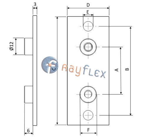 PLACA INFERIOR LARGA C/TALADROS ESTÁNDAR INOX