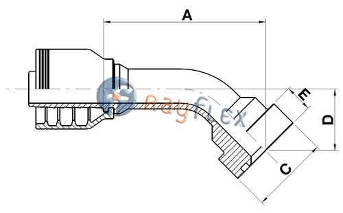Código | Brida | Ø brida | A | C | D | E | Ø manguera |
